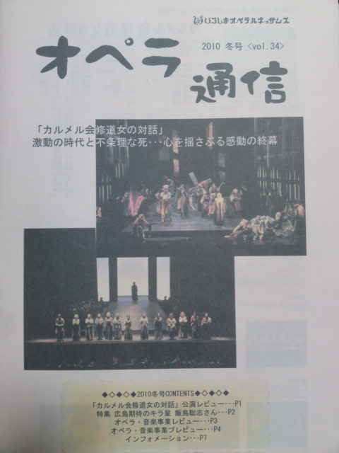 「オペラ通信」に僕のインタビュー記事が載っています☆ 記事のタイトルは・・・ ☆広島期待のキラ星☆ 恥ずかしいですね・・・(笑) どこに置いてあるのか詳しくは分からないのですが 広島市文化財団関係の施設には置いてあるのではと思います。 探してみてください(^ ^) そして、オペラのお知らせです! 『 子どもと呪文 』 全1幕/日本語上演 台本:コレット女史 作曲:モリス・ジョゼフ・ラヴェル 日時:2011年2月4日(金) 開場18:30 開演19:00 会場:アステールプラザ多目的スタジオ 入場無料(満員の場合は入場をお断りする場合があります。) 指揮:平野満 演出:唐谷裕子 ピアノ伴奏:枝川 泰子