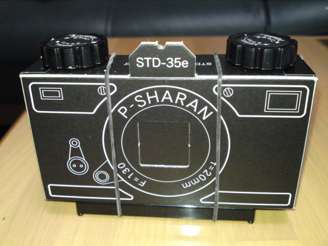 今日手に入れたカメラがこれです☆ ピンホールカメラです! シャランという会社が作っています。 輪ゴムで留めてあるのは 暗箱に光が入らないようにするためです 箱の底には三脚に取り付けられるようネジ穴もあります。 紙製で自分で組み立てるんですが 結構しっかりした作りで組み立てるのに二時間近くかかりました! ピンホールの回りは触ってはいけないのですが 組み立てた後、出来上がりを観察していたら ピンホールの回りに指紋が付いていました・・・ いつの間に触ったんだろう・・・ とまれ、明日撮影に出かけてみます(^ ^) シャラン http://www.sha-ran.co.jp/ PR