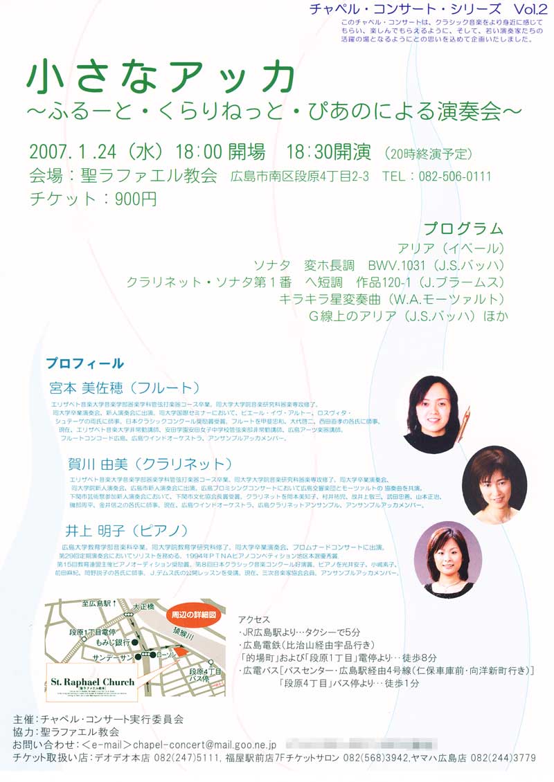今夜は寅さんを見ました。 寅さんは面白いけど切ないですねぇ。 俺が企画運営するチャペル・コンサートの第二弾です。 プログラムが決まりましたのでお知らせします。 アリア(J.イベール)