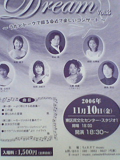 初めて出させてもらうのですが、トークをまじえた身近で楽しいコンサートとのことです。 東京からバス・バリトンの村山岳さんという方が来られるみたいで とても楽しいトークをされる方のようです。 まだお会いしていないのですが楽しみです。