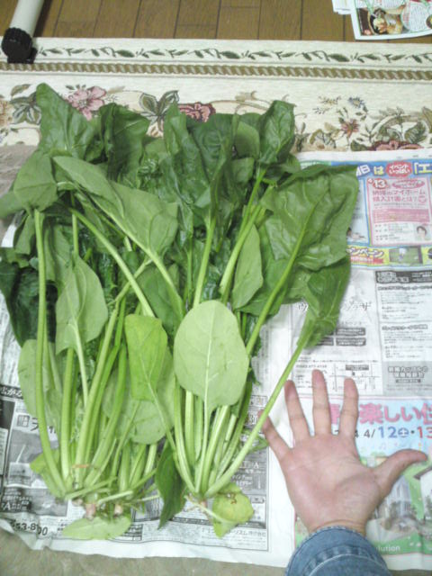 新学期も始まり生活の方もやっと落ち着いてきました。 先日巨人の国のホウレンソウみたいに大きなホウレンソウを いただきました。 体が緑色になりそうなくらいホウレンソウを食べました。 これを機に報告・連絡・相談を大事にして もう少しまめにブログの更新をいたします(笑) 今日のお奨めは面白い空耳の映像を。 http://www.youtube.com/watch?v=Fke7GWcT5ko |